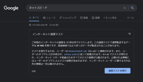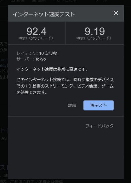 いくつかの速度測定サイトで計測してみましたが、ほぼ同じ様なデータでした。