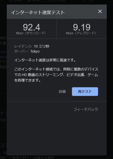 いくつかの速度測定サイトで計測してみましたが、ほぼ同じ様なデータでした。
