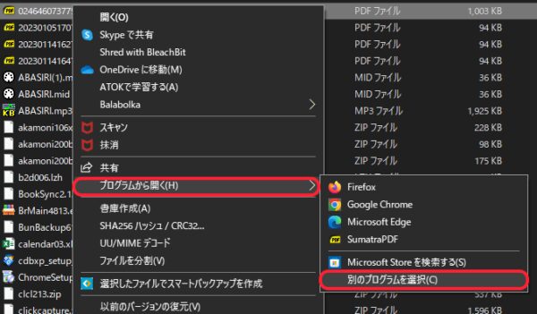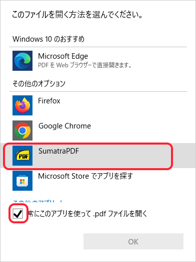 PDFを開く既定のプログラムはSumatraPDFを利用していました。