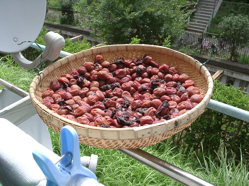 トトロは仕事に出掛け一人です、洗濯、掃除をして梅干しを干しました。