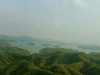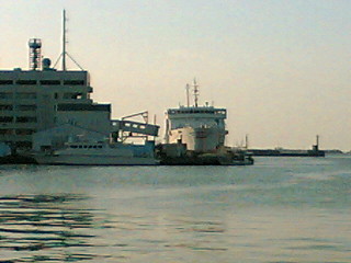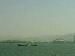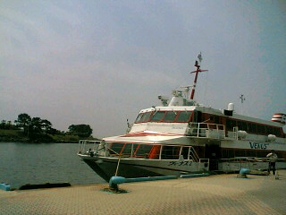 ジェットホイル乗船中、80キロのスピード、乗り心地は電車のようだ。