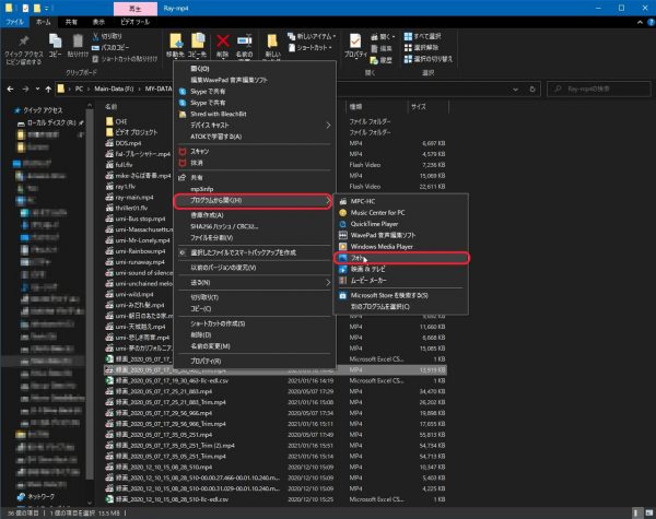 エクスプローラーでトリミングしたい動画を選択し右クリツクします。フォトを選択します。