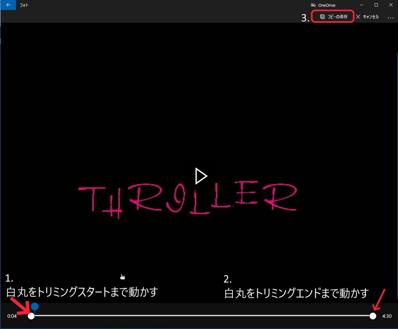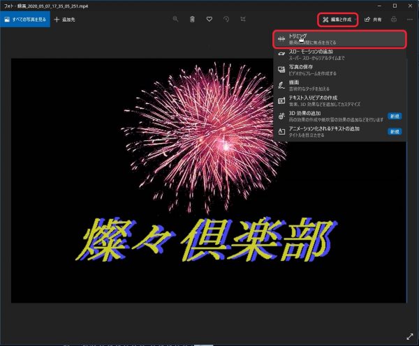 Windows10のフォトで簡単な前後のトリミングが出来ます。