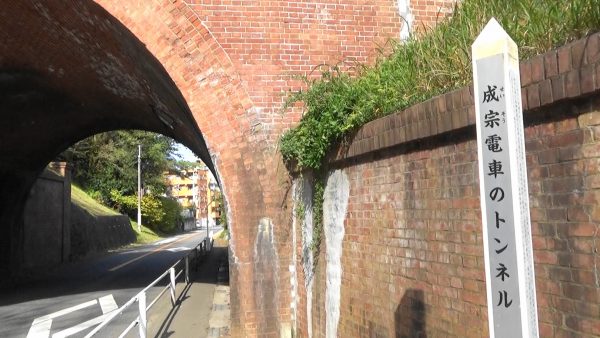 まだ、新勝寺近くにはトンネルが残っています。宗吾霊堂近くには成宗電気軌道継続会社の千葉交通の記念碑が建っています。