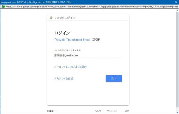 じゃ、Thunderbirdならどうだと、IMAP接続設定で新規にやってみました。