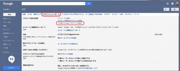 それまでにやったGmailの設定は下記の通りです。ブラウザからGmailを開き、Gmail設定画面に入ります。