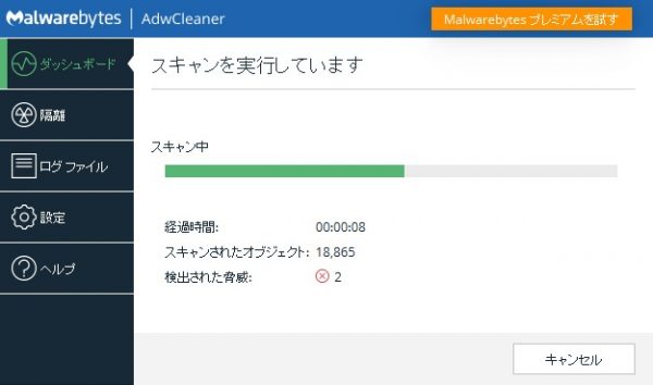 Adwareは隔離されます。