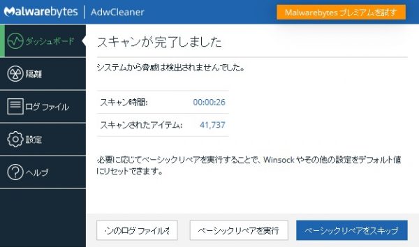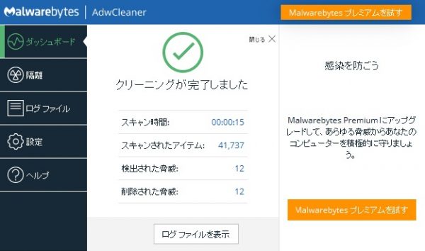 過去に何回か、五月蠅いAdwareから、このソフトに助けて貰っています。