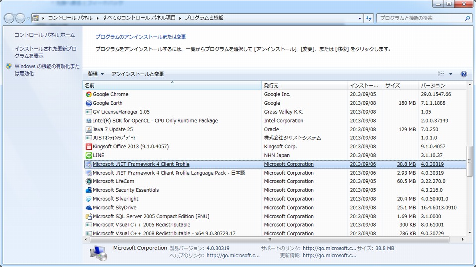 「プログラムと機能」から「Microsoft .NET Framework 4 Client Profile」を選択し、右クリックで「アンインストールと変更」、クリックして「元に戻して修復する」で修正が出来ました。