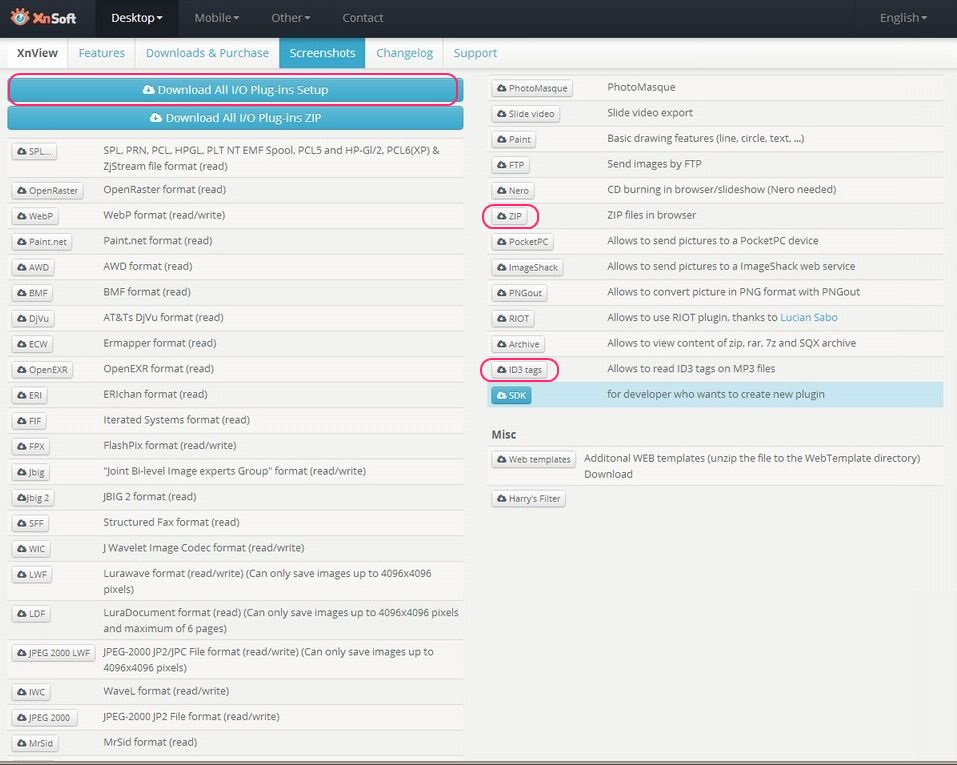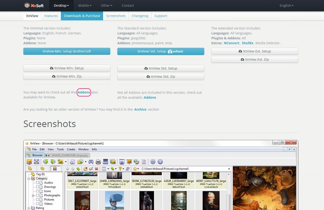 これがXnviewサイトではとても分かりづらい位置にあります。
