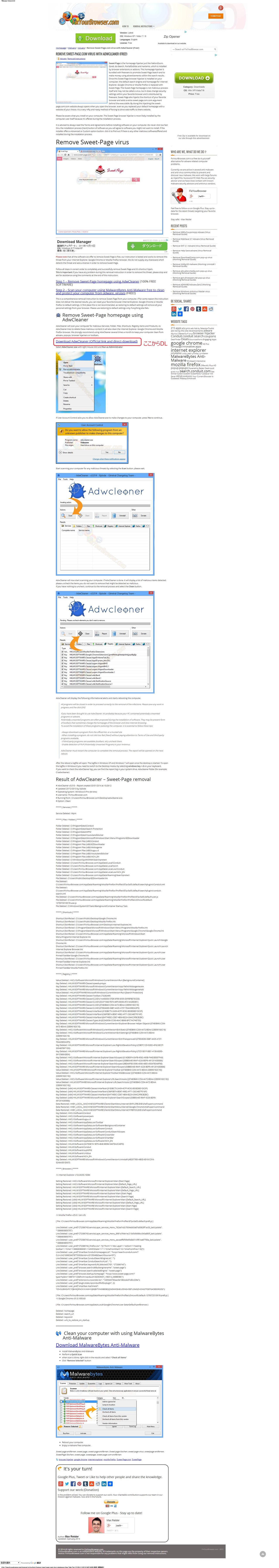 http://www.fixyourbrowser.com/removal-instructions/remove-sweet-page-com-virus-adwcleaner-free/AdwCleanerをダウンロードをして、実行しました。