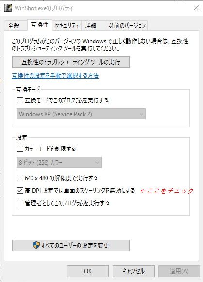 画面キャプチャーによく利用しているWinShotですが、これも10では正常に動作しなくなります。