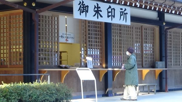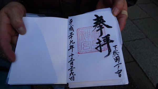 息栖神社の社務所は8時半からオープン、御朱印をもらっていました。