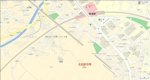 稲城駅近くにある北辰妙見尊と言う神社からスカイツリーが見えました。