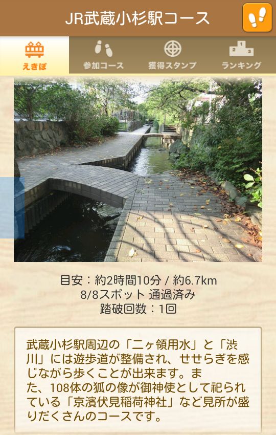 「えきぽ」のポイントチェックをしながら駅からハイキングのコースで歩きます。