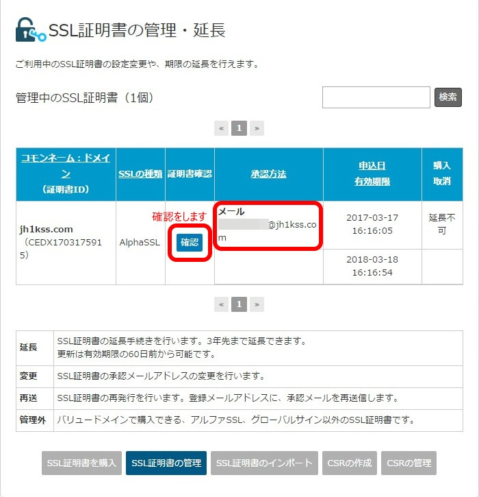 ※ValueDomainのメニュー「SSL証明書」のサブメニューに「SSL証明書のインポート」がありますが、こちらはValueDomainで取得した場合には必要ありません。