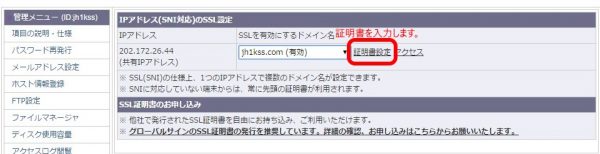 1.SSL化のドメイン導入設定は下記ヘルプを参照して下さい。