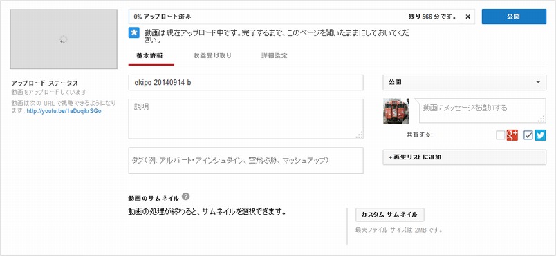 自宅からYouTubeアップロードにこのところ支障が発生しています。