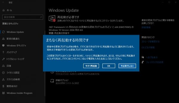 初めての画面だ、なんじゃろと検索してみると再起動しろと書いてある。